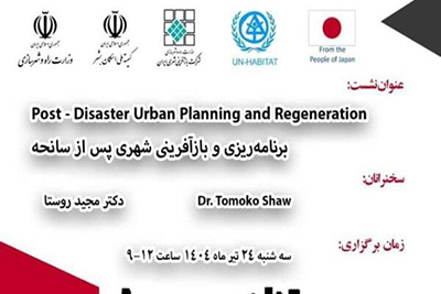 نشست تخصصی برنامه ریزی و بازآفرینی شهری پس از سانحه توسط شرکت بازآفرینی شهری ایران در همکاری با برنامه اسکان بشر ملل متحد (هبیتات) برگزار می شود.