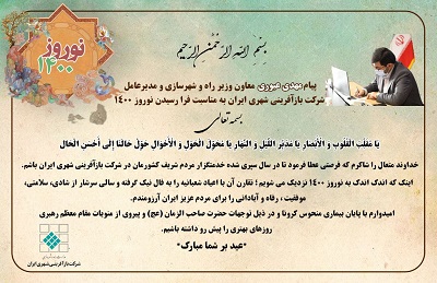 مهدی عبوری معاون وزیر راه و شهرسازی و مدیرعامل شرکت بازآفرینی شهری ایران در پیامی فرا رسیدن نوروز ۱۴۰۰ و آغاز سال جدید را تبریک گفت.