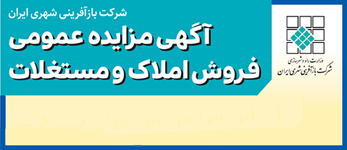 شرکت بازآفرینی شهری ایران در نظر دارد، تعدادی از املاک و مستغلات متعلق به خود در استانهای آذربایجان شرقی، اردبیل، اصفهان، خراسان رضوی، سیستان و بلوچستان، گلستان، فارس را به صورت" نقد"و " نقد و اقساط" از طریق مزایده عمومی به فروش برساند .
