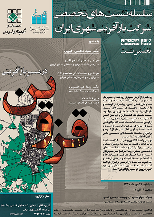 به گزارش روابط عمومی شرکت بازآفرینی شهری ایران، اولین نشست از سلسله نشست های دفتر هجدهم با موضوع "قزوین در مسیر بازآفرینی" دوشنبه، 23 مهرماه 1397 ساعت 14 در سالن اجتماعات شرکت بازآفرینی شهری ایران برگزار می شود.