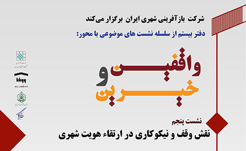 نشست پنجم از دفتر بیستم سلسله نشست‌های تخصصی موضوعی با محور "واقفین و خیرین" با عنوان " نقش وقف و نیکوکاری در ارتقاء هویت شهری " در روزر یکشنبه مورخ 98.07.21 در ساختمان وارطان برگزار می شود.
