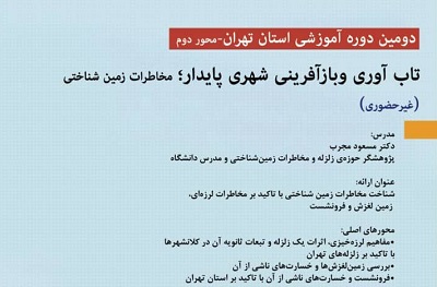 مفاهیم لرزه خیزی، اثرات یک زلزله و تبعات ثانویه آن درکلانشهرها با تاکید بر زلزله‌های تهران، بررسی زمین لغزش‌ها و خسارات ناشی از آن، فرونشست و خسارات ناشی از آن با تاکید بر استان تهران از جمله موضوعات مورد بررسی در این وبینار آموزشی به شمار می رود.