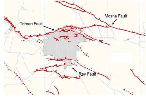 سه گسل شمال تهران از فرحزاد تا لشگرک، شرق تهران شامل اتوبان شهید بابایی، تا سید خندان و گسل پر خطر جنوب تهران که ری، دولت آباد و بخشی از اسلامشهر را در بر گرفته و قدرت ویرانگری بسیار بالایی دارد