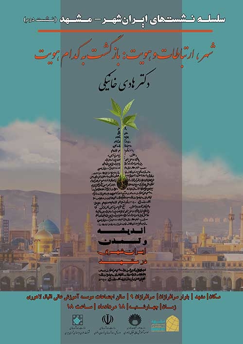 به گزارش روابط عمومی شرکت مادر تخصصی عمران و بهسازی شهری ایران ، نشست دوم  از سلسله نشست‌های بازخوانی مفهوم ایران‌شهر در استان خراسان رضوی و در شهر مقدس مشهد با سخرانی دکتر هادی خانیکی در روز چهارشنبه 18 مرداد ماه  از ساعت ۱۸ برگزار می‌شود.