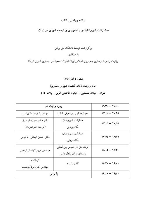 در  این نشست آقای دکتر هانس لوییدگر دینل، آقای دکتر حسین ایمانی جاجرمی، خانم مهندس مریم کهنسال نودهی و آقای مهندس کاوه فولادی نسب به ایراد سخنرانی خواهند پرداخت.
