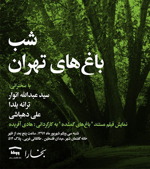 گفتنی است، پخش فیلم مستند "باغ های گمشده" به کارگردانی هادی آفریده به نمایش گذاشته خواهد شد.