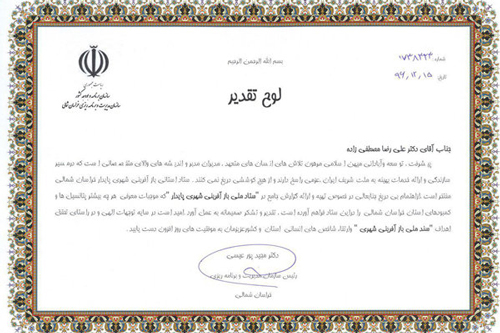 گفتنی است در متن تقدیرنامه آمده است: