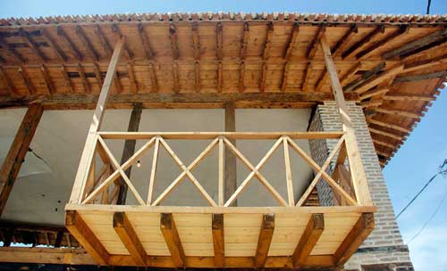 نوع سازه اين اثر ديوار باربر آجري است و در طبقه تحتاني آن مطبخ و مغازه قرار دارد که اين مغازه نيز در ايام محرم کارکرد تکيه پيدا مي کند. از خصوصيات مهم اين تکيه قرار گرفتن داخل مجموعه اي مسکوني و ارتباط مستقيم آن به داخل خانه است به نحوي که در ضلع شمالي تکيه حياط منزل مسکوني و در ضلع غربي حياط، سه اتاق سه دري قرار دارد.
