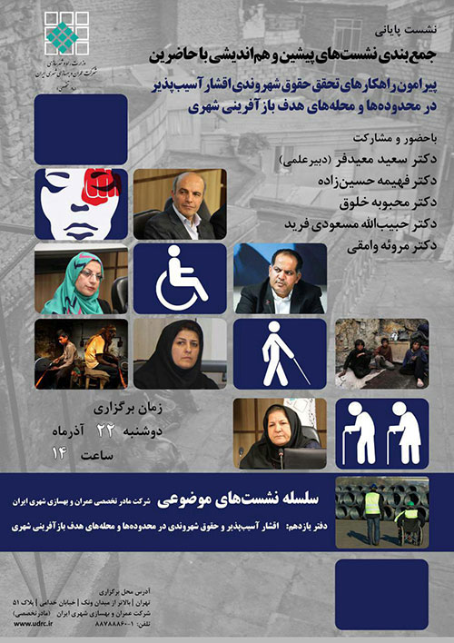 جمع بندی نشست های پیشین و هم اندیشی با حاضرین"« پیرامون راهکارهای تحقق حقوق شهروندی اقشار آسیب پذیردر محدوده ها و محله های هدف بازآفرینی شهری "